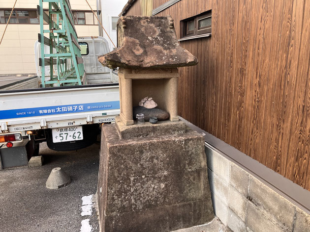ちょちょぎれハウスの横に社。よく分からない石が祀られていた。祟りがありそうなのでお触りせず立ち去る。