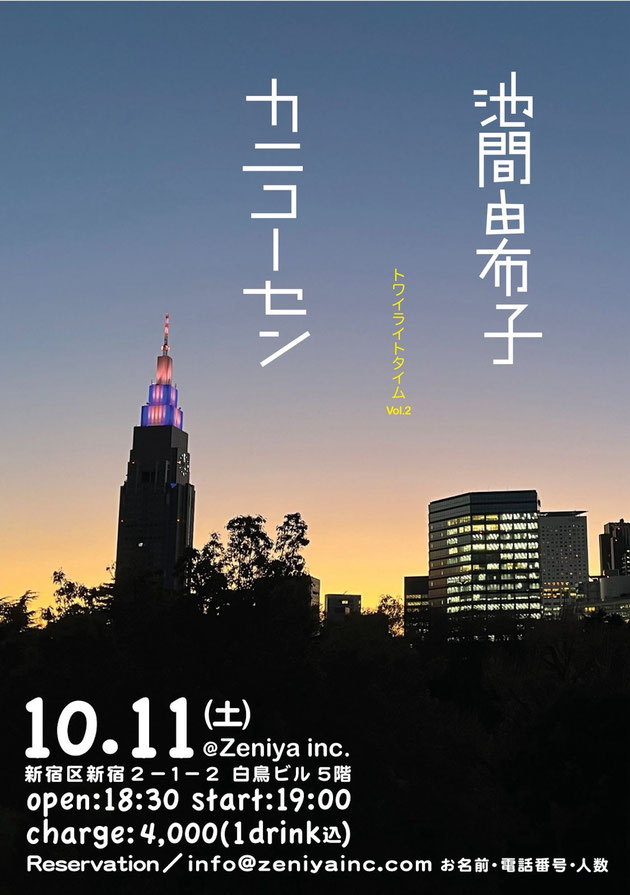 ◎予約 info@zeniyainc.com (お名前 電話番号 人数)